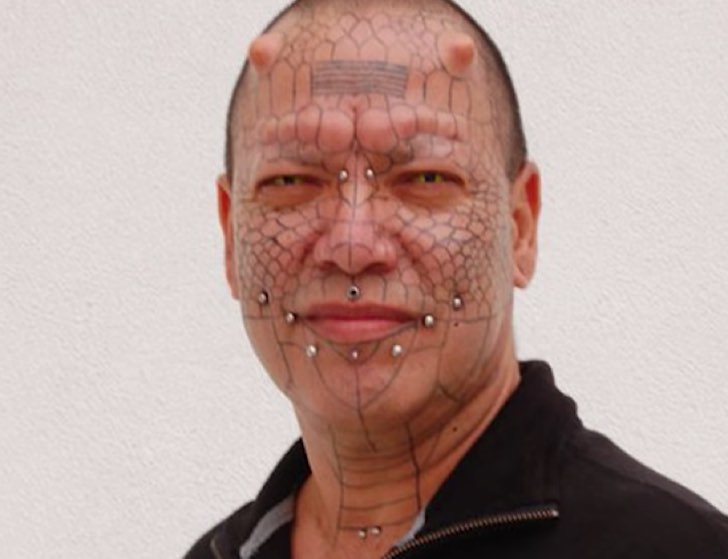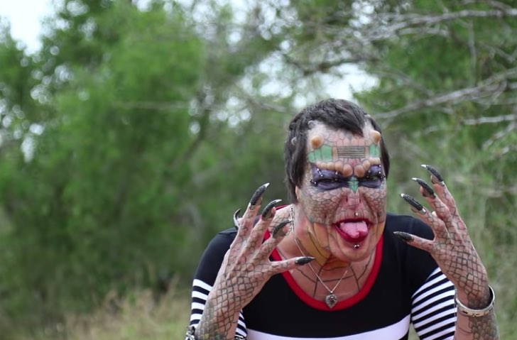 Para esto, tuvo que renunciar a su trabajo en un importante banco en los Estados Unidos en donde era el vicepresidente. A partir de ese momento, comenzó a someterse a múltiples tratamientos que incluían, cortar por completo sus orejas, modificar al extremo su nariz, teñir sus globos oculares de color verde y tatuarse por completo la piel con escamas.