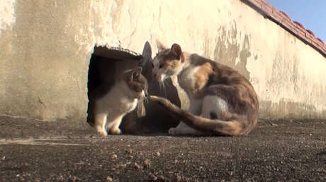 Han descubierto este triste pero conmovedor caso y realizaron un video que muestra cómo una gata callejera cuida y protege a su cría discapacitada.