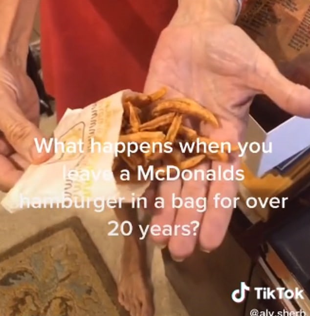 Una abuela que conservó las papas fritas y la hamburguesa de McDonald’s durante 24 años mostró cómo la comida aún se ve “fresca” después de haberla guardado en su armario durante más de dos décadas.