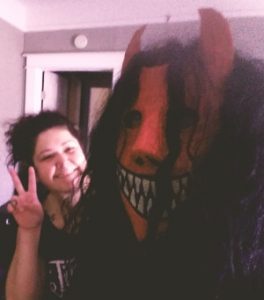 Un hombre que llevaba una máscara de diablo supuestamente mató a machetazos a su novia y a su hermana adolescente.