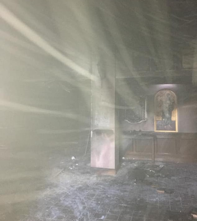 Según los informes, la Iglesia Católica Nuestra Reina de la Paz se incendió mientras los feligreses se preparaban para una misa.