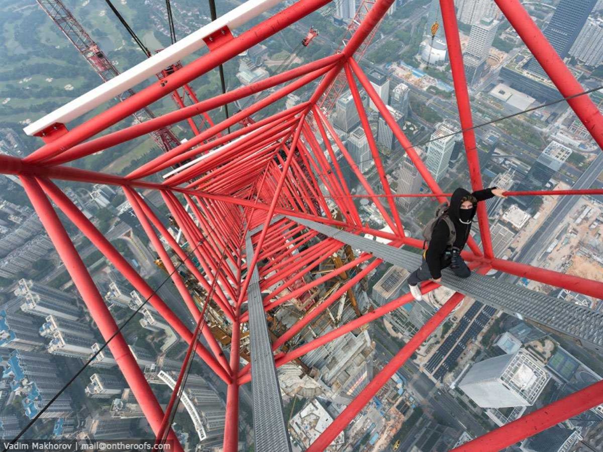 Llegaron hasta los 660 metros de altura desde una grúa para tomar la construcción de la Ping An Financial Center en Shenzhen, China. Este es el cuarto edificio más alto del mundo y el segundo en China.
