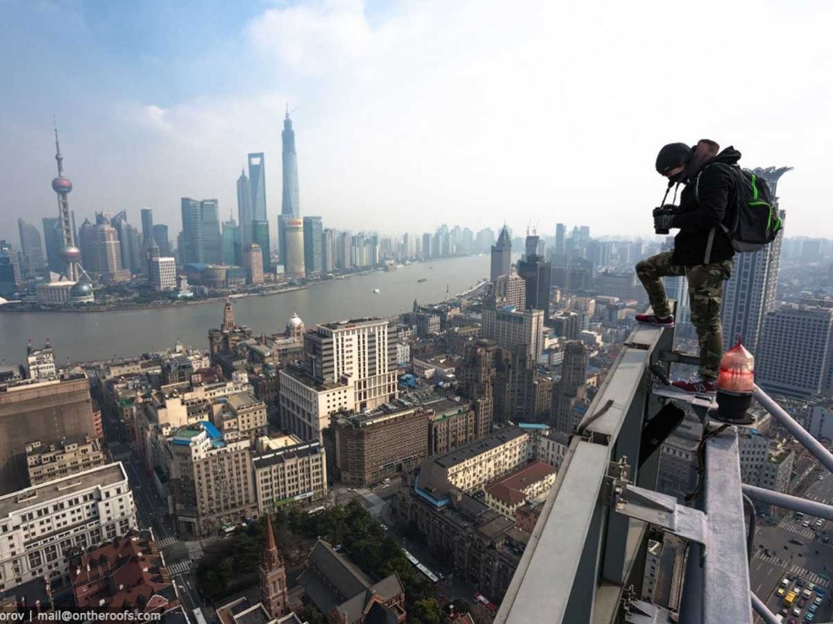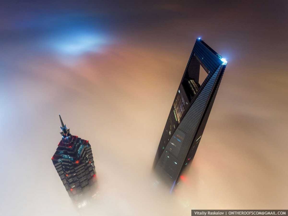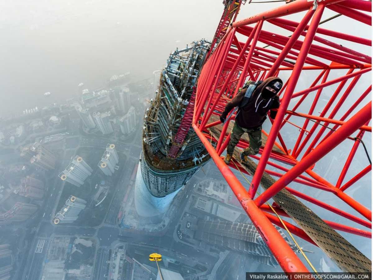 Una vez que entraron en la torre tuvieron que esperar 20 horas, ya que había amanecido. Subieron por la grúa y lograron estas increíbles imágenes. Se pueden apreciar de manera espectacular las torres vecinas de Jin Mao y Shangai World Financial Center.