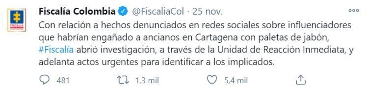 El influencer recorrió calles de Cartagena para entregarles las paletas de jabón a los mayores. Luego publicó su pesada broma esperando recibir buenos comentarios, pero lejos de eso, fue condenado por todos en redes. Él afirmó que tenía el consentimiento de todos los que participaron en la broma, alegó que grabó el video para “entretener a la gente”.