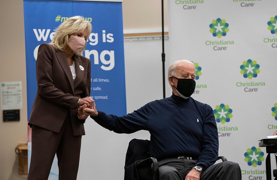 La Dra. Jill Biden recibió su vacina contra el Covid-19 momentos antes que su esposo y estuvo al lado del presidente electo mientras lo vacunaban.