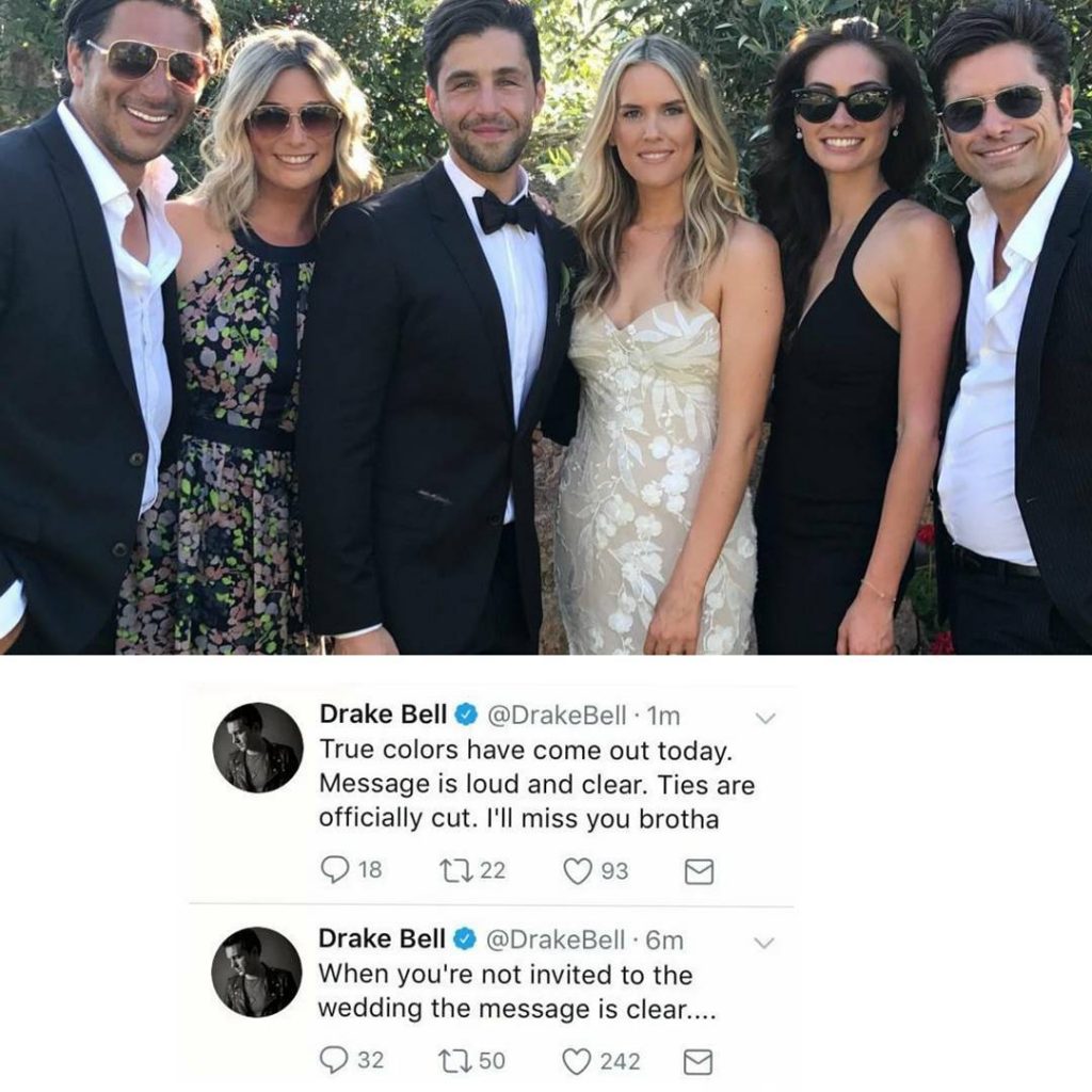 Fue muy extraño para todos los que conocían a los actores el programa de Disney Channel que en la boda de Josh Peck y Paige O´Brien, no apareciera quien fue su compañero durante tantos años, Drake Bell. Incluso en ese momento y para reiterar las sospechas de un alejamiento entre estos dos viejos amigos fue un mensaje de Drake en Twitter, donde decía: