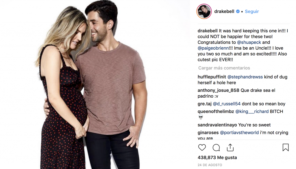 Esto conmocionó y alegró a miles de personas, además de verlos juntos después de tantos años, Josh anunció a su amigo que se convertirá en padre. Después de esta noticia, Drake subió una fotografía en donde felicitaba al matrimonio y posteriormente, también envió un video en la cuenta de Josh en donde muchos mostraban sus reacciones al saber la noticia.