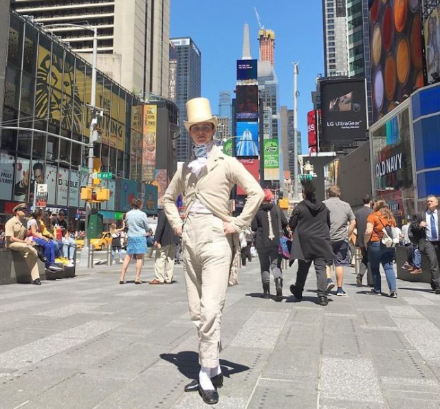 A menudo se le ve comprando con un sombrero de copa en su ciudad natal de Brighton (Reino Unido) y ahora también diseña ropa para otros fanáticos de la historia.