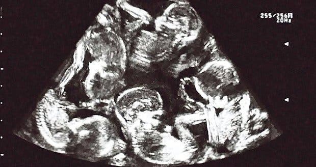 Le informaron que para que una mujer quede embarazada de quintillizos de forma natural la probabilidad es de una en varios millones. Alexandra explica que estaba tan emocionada que comenzó a llorar cuando los doctores localizaron una quinta cabeza en la ecografía, pero en realidad estaba todo un poco difuso: sólo se veían cabezas y piernas, así que decidieron esperar con ansias todo el embarazo sin saber si eran niños o niñas.