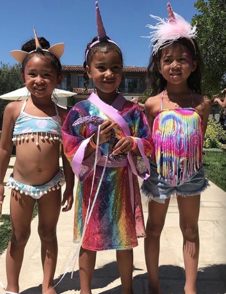 A sus cortos 5 y 6 años, las pequeñas Kardashian, saben vivir como princesas, su fiesta de lo más ostentosa, todo con temática de unicornios y arcoíris, incluso cualquier pequeño de la realeza envidiaría.