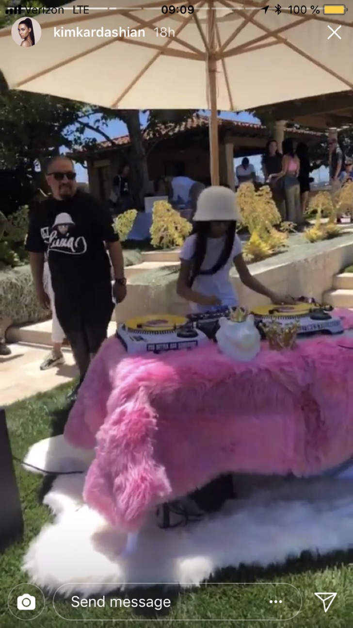 Para ir en conjunto con su fiesta, las pequeñas Kardashian vestían ropa de verano multicolor y lo que llamó mucho la atención de todos los presentes y de las pequeñas, fue que la Dj fue una niña de 10 años, quien amenizó la fiesta de manera muy original.
