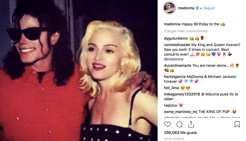 Entre las personas que le rindieron un homenaje a Michael Jackson estuvo Madonna, que decidió publicar dos fotografías en su Instagram deseándole un “Feliz cumpleaños”.