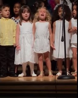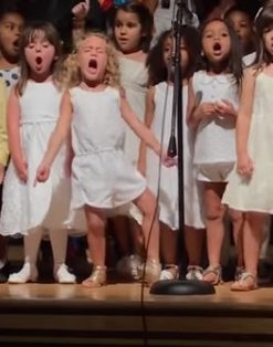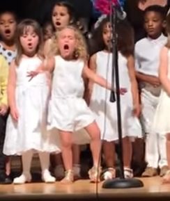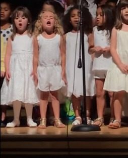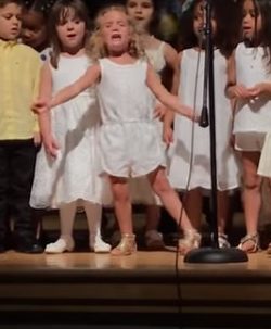 El resto de los niños canta tímidamente o saluda a sus padres, pero Sophia dejó al público boquiabierto con sus movimientos y la pasión con la que canta.