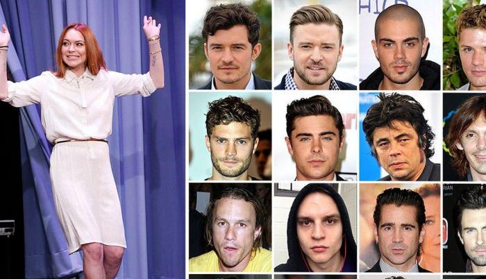 No todos los 150 sex mates de Lindsay son celebridades, pero entre los más famosos destacan: Zac Efron, Ashton Kutcher, Joaquin Phoenix, Adam Levine, el fallecido actor Heath Ledger, James Franco, Colin Farrel, Justin Timberlake, Evan Peters, Jamie Dornan, Lucas Haas, Wilmer Valderrama, Jamie Burke y Nico Tortorella.