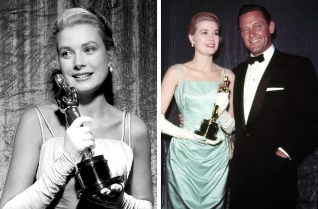 Grace Kelly es muy recordada por la premiación de 1955 donde vistió un vestido verde pálido con pliegues, diseñado por Edith Head, quien había trabajado en la Paramount, fue realmente un precedente de la elegancia en ese momento en los premios de la Academia.