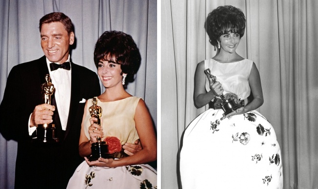 Elizabeth Taylor llevó esa noche un modelo de Dior que se llevó las miradas de los invitados, recibió su premio por su trabajo en la película “Una venus en visón”