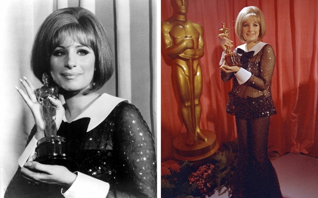 Barbra Streisand lució este modelo para recibir el Óscar por su actuación en el filme “Chica rara” y precisamente fue raro ver que ese año Barbra llevó un pantalón traslucido. Realmente las críticas por su vestuario no fueron muy buenas, pero siempre es recordada por esos momentos.