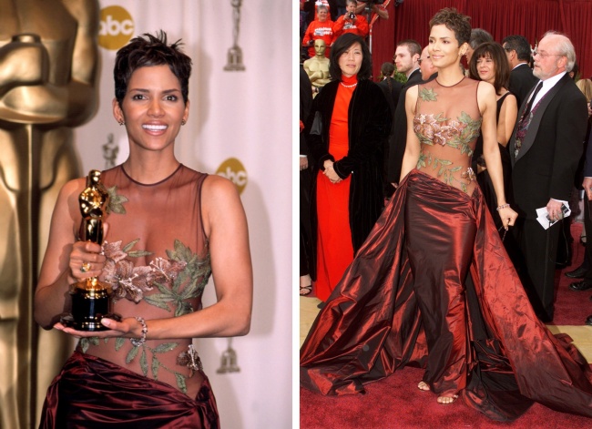 Halle Berry fue ´premiada en el 2002 por su trabajo en la película “El pasado nos condena”. Halle impactó a todos los presentes con un vestido sensual y elegante, uno de los modelos más sexis de la historia del Óscar.