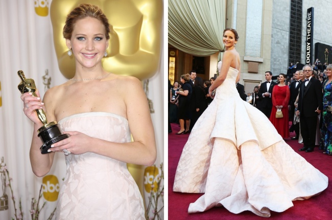 Este vestido está valuado en 4 millones de dólares y fue diseñado por la casa Dior, es el atuendo más caro hasta la fecha en la historia de los premios Óscar, Jennifer lo lució al recibir el premio por la película “Los juegos del destino”. Es realmente un modelo increíble.