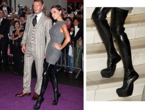 Uno más para la colección de: “¿Cómo esta mujer puede mantener el equilibrio con eso?” Aquí tenemos a la esposa de Beckham con botas sin tacos, que deben ser muy incómodas.