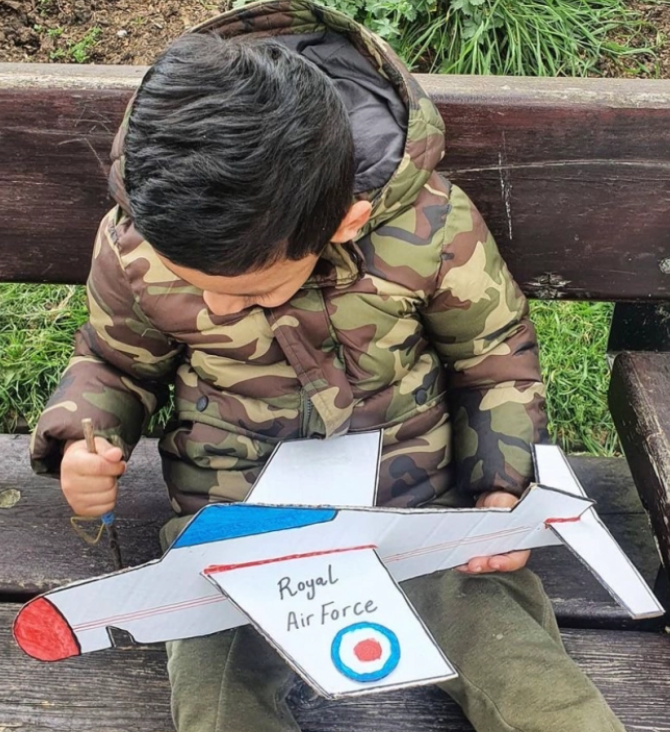 “Hemos hecho un disfraz de robot, un escudo de cartón, RoboCop, un cohete, un coche de policía y los trajes de Stick Man.