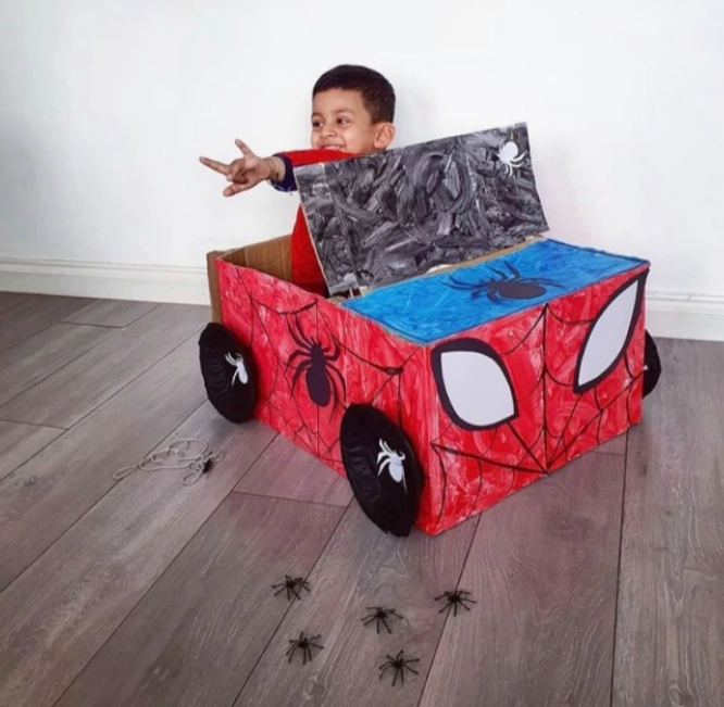 “A Idris también le encanta disfrazarse y el cartón es resistente y duradero.
