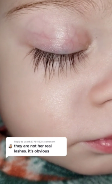 Otro usuario de TikTok hizo una copia de seguridad de la madre comentando: “Bueno, obviamente son sus pestañas reales, no le pondría maquillaje o pestañas postizas a un bebé”.