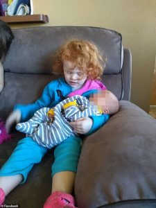 Los oficiales dijeron que la niña llevaba solo un pañal y estaba cubierta de moretones en la mandíbula, la cabeza, el antebrazo y el esternón. Ella también tenía ‘lo que parecía ser una marca de mordida humana’ y una lesión por quemaduras.