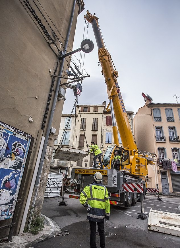 Luego usaron una cama hecha a medida y una grúa para transportar a Alain desde el primer piso hasta el suelo.