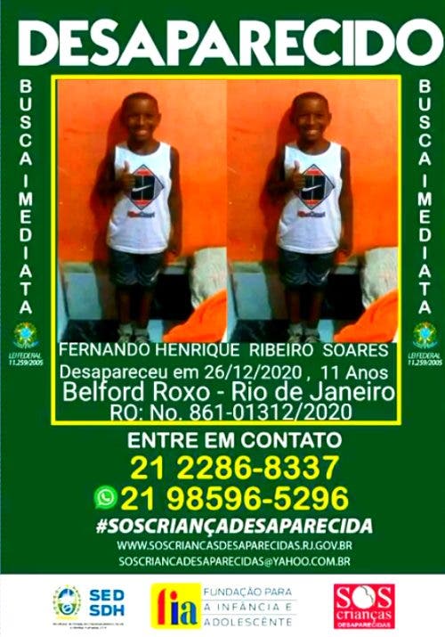 Esto es lo que viven los padres de 3 pequeños brasileños, llamados Matheus, de 8 años; Alexandre, de 10 años; y Fernando Henrique, de 11 años. Desaparecieron unas semanas, el pasado 27 de diciembre de 2020, cuando jugaban en Belford Roxo, en la zona denominada Baixada Fluminense.