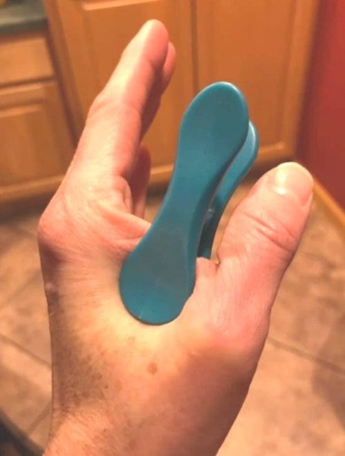 “Había agotado mis medicamentos y trucos que suelo usar para aliviar mis migrañas. Busqué en Internet algo llamado “Aculief”. Miré en el mostrador de mi cocina y hallé este clip que pensé que cumpliría la misma función”.