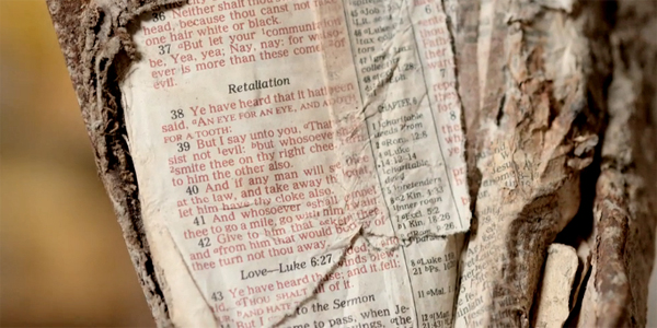 La página que había encontrado tenía el versículo 38: “ojo por ojo y diente por diente”.
