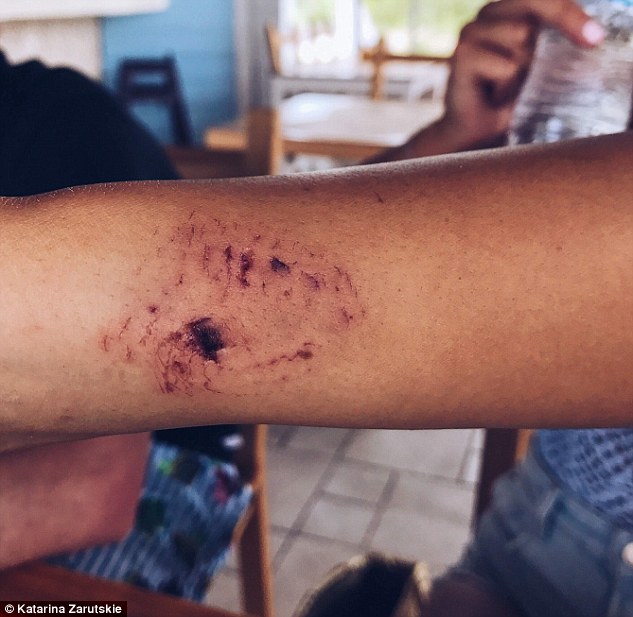 Katarina tomó una fotografía de su lesión y dijo que se sintió afortunada de estar viva después del ataque.