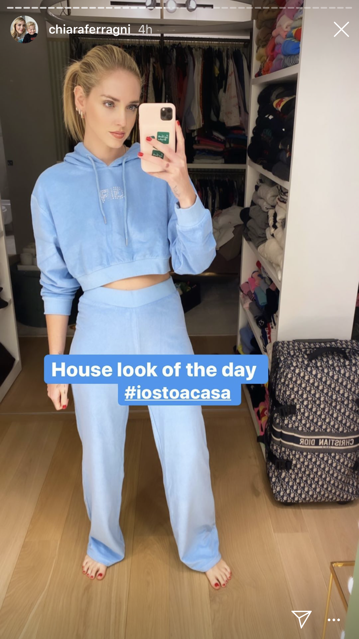 Ferragni, quien es seguida por más de 18 millones de personas en Instagram, ha cambiado las fotos glamorosas de la semana de la moda y vacaciones de lujo por fotos de su “aspecto del día”, ya que ella y su familia deben permanecer dentro de casa en Milán, obedeciendo las nuevas medidas del país por la amplia cuarentena de coronavirus en Italia.