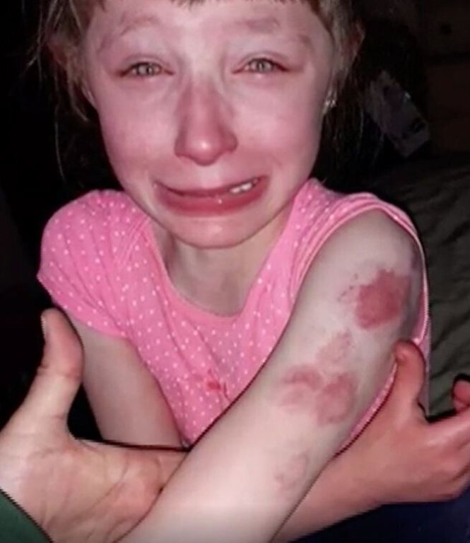 La niña de 10 años llegó a casa llorando y agarrada de los brazos. Su madre no se dio cuenta del alcance de las lesiones hasta que la bañó.