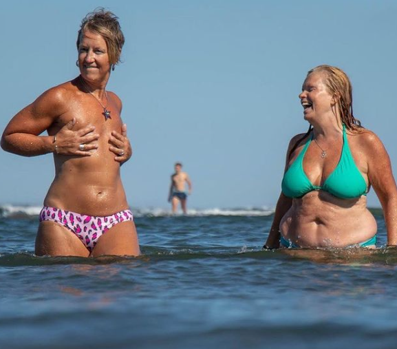 Y su pecho sin tetas no ha pasado desapercibido en la playa. Ha visto a niños pequeños echar un segundo vistazo y espera que eso provoque conversaciones en casa sobre el cáncer.