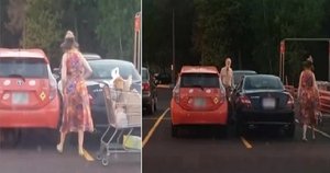 La mujer entró con su carrito de comestibles y comenzó a apilarlos en la cajuela de su auto. Ella era ajena o tenía la esperanza de que el auto que bloqueaba el suyo saldría antes de que terminara, pero no tuvo esa suerte.