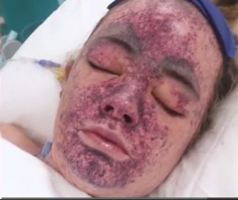 Cuando se despertó a la mañana siguiente, estaba cubierta de erupciones oscuras y manchadas y fue trasladada de urgencia al hospital.