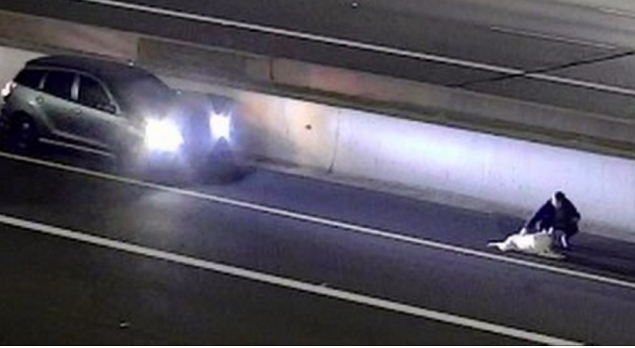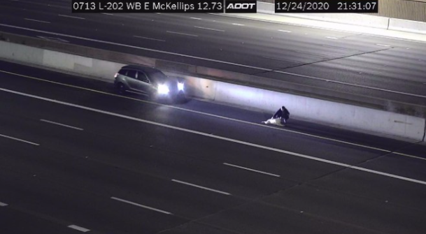 Una cámara de tráfico del Departamente de Transporte en Arizona (Estados Unidos) captó el momento justo en que una mujer detiene su auto para auxiliar a un perro lastimado.