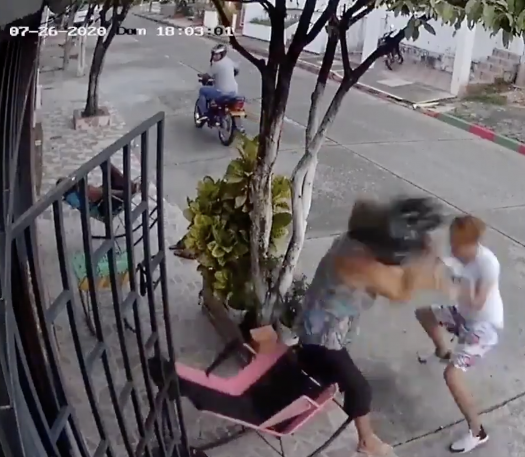 Una mujer mayor descansaba en la vereda de su casa en Colombia, en Santander, cuando dos ladrones en moto decidieron abordarla para quitarle el celular que la mujer usaba en ese instante.