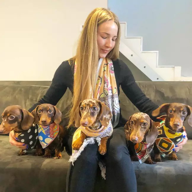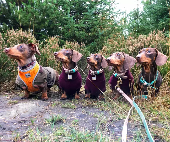 Harriet Birch es la orgullosa dueña de un escuadrón de cinco perros salchichas que con muchos seguidores en Instagram.