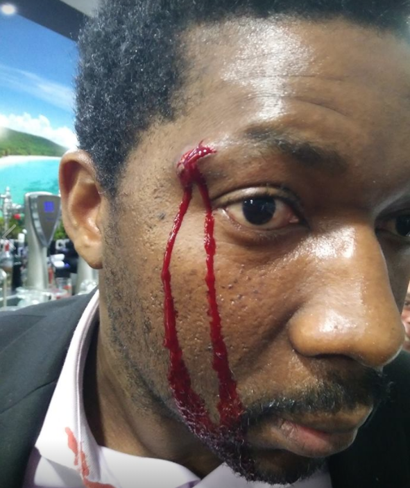 “Acto seguido me ha pegado un botellazo en la ceja derecha y la sangre ha empezado a brotar”.