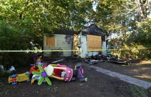 A su llegada, los bomberos encontraron la pequeña casa de un piso envuelta en llamas, con fuego saliendo por las ventanas delanteras y laterales, según un comunicado de prensa de las autoridades. Tres víctimas fallecidas fueron recuperadas de la escena: una mujer de 53 años y dos niños pequeños.