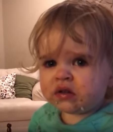 La madre le recomienda que huela la pequeña porción de wasabi antes de comerla, ella prueba con la punta de la lengua la pasta. La menor reaccionó con incertidumbre, en su rostro no se aprecia euforia ni tampoco rabia, pero de inmediato grita “¡Help!” (Ayuda) mirando a la cámara. Al fondo se escuchan risas de la madre ante la reacción de la bebé.