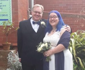 La imitación de una boda, ya que la mujer no puede volver a casarse legalmente, se llevó a cabo en la Iglesia Unitaria en Chorlton, Manchester.