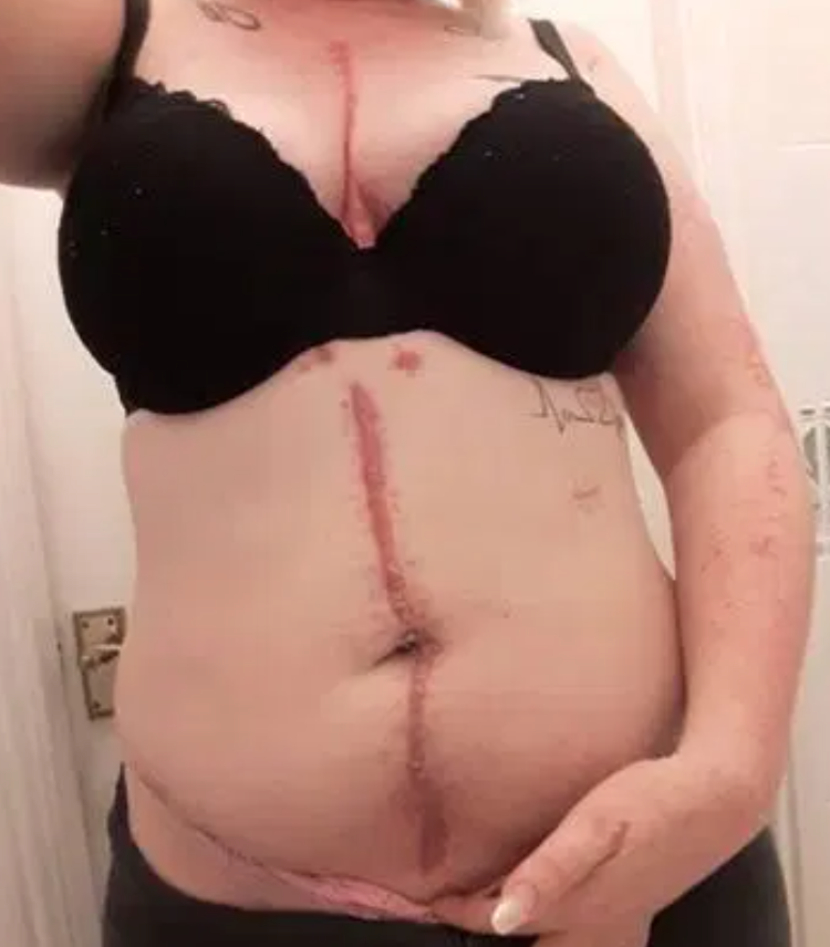 La joven de 28 años tuvo que someterse a una cirugía de 14 horas, una traqueotomía y pasó cuatro días con soporte vital recuperándose de sus lesiones, incluido un desgarro en la pared del corazón y un pulmón colapsado.