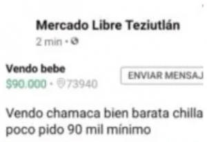 En los detalles de la imagen explicaba que era muy joven para mantenerla y que su marido la había dejado. Dicha fotografía apareció en un grupo de facebook llamado “Mercado Libre Teziutlán.” explica el reconocido medio Radio Fórmula.