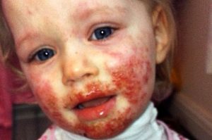 “Comenzó a parecer que alguien le había echado ácido sobre la cara, se extendió desde la boca hasta las mejillas y por encima de los ojos”.