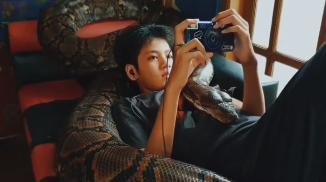 No es solo Chalwa quien se siente completamente cómodo rodeado de pitones gigantes; su hermano menor también aparece en algunos de los videos virales, y se ve igual de despreocupado.