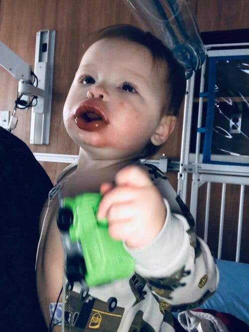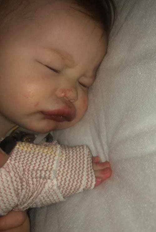 Durante este tiempo el bebé no podía comer ni beber sin sentir dolor. “Quería algo de beber porque su boca estaba muy seca. Así que cada vez que le daba algo de beber, se enojaba mucho, porque no podía llevársela a la boca por el dolor que sentía”, indicó la madre.
